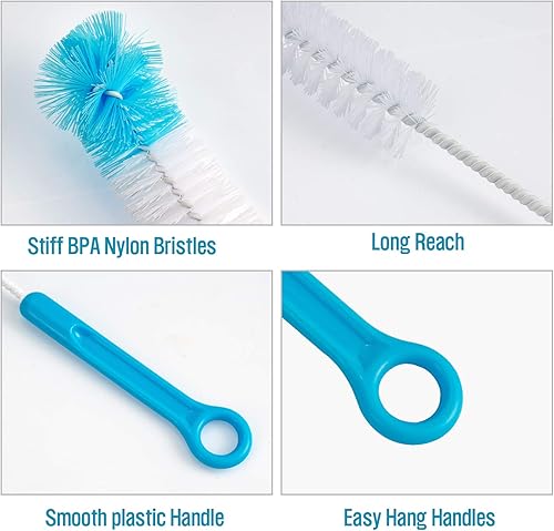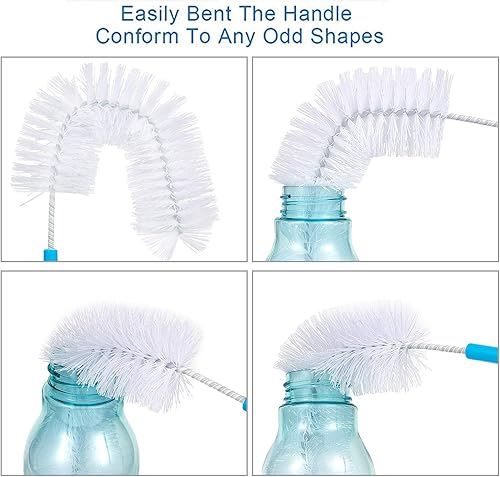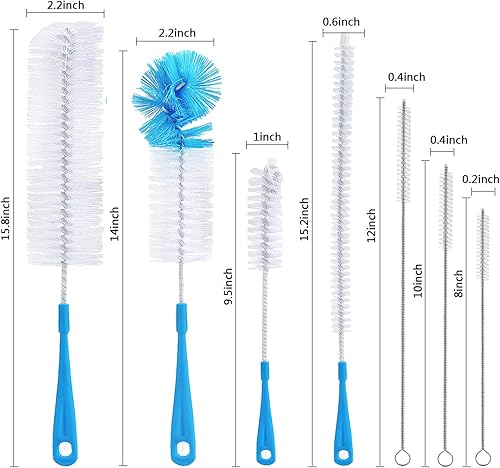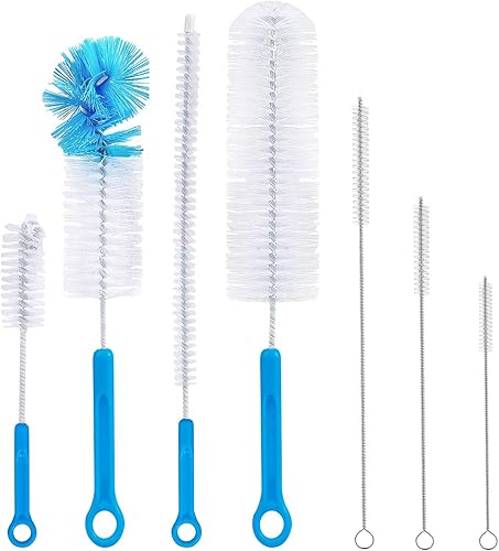 Lot de 7 brosses de Nettoyage de Bouteilles polyvalentes, nettoyant de Brosse Durable pour Verres à biberons Flacon Tube Tuyau Machine à café en Paille Théière Bec de vin Carafes,Rose