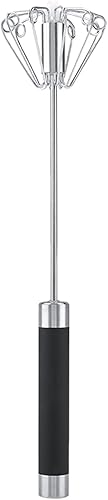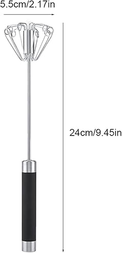 Cyrank Fouet Rotatif Universel Tout Usage, 2 Pièces, Batteur à œufs Semi-automatique En Acier Inoxydable, Noir, 24 cm x 5,5 cm