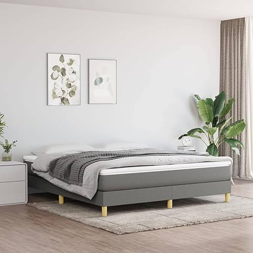 JUNZAI Sommier Tapissier,Matelas Et Sommier,Lit avec Sommier Et Matelas,Sommier à Ressorts de lit Gris foncé 180x200 cm Tissu