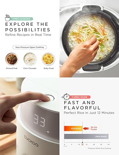 CUCKOO Cuiseur à riz et cuiseur vapeur avec 16 programmes, induction, mode pas de pression, fonction de cuisson ouverte, minuterie, pot intérieur en acier inoxydable antiadhésif (jusqu'à 10
