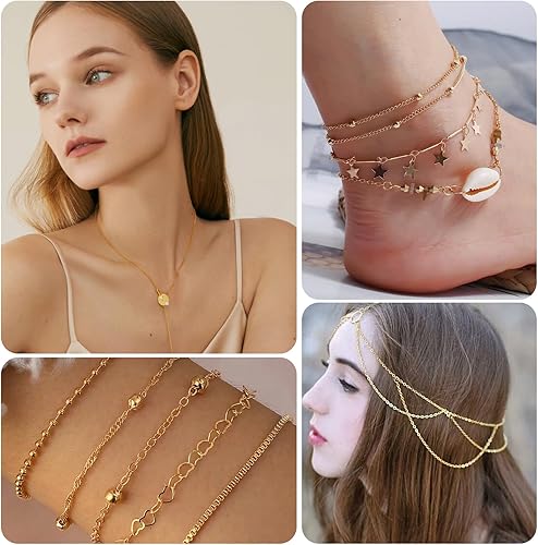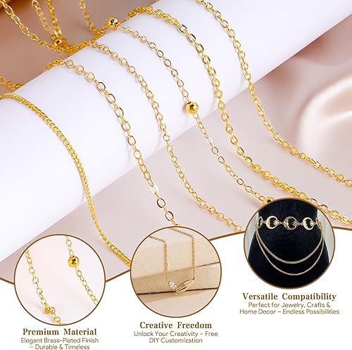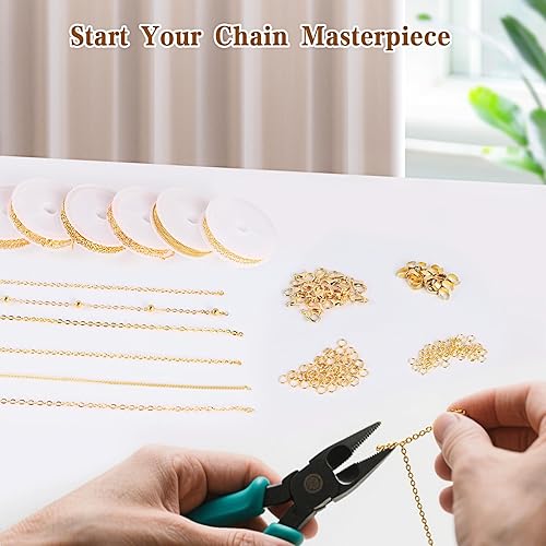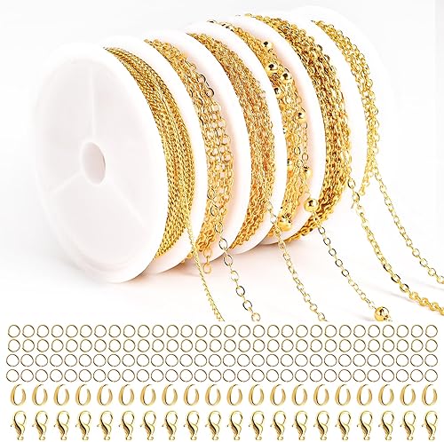 OCCOUMR 14 m - 6 rouleaux de chaîne à maillons dorés - Vendu au mètre - Accessoires de fabrication de bijoux avec anneaux et fermoirs mousquetons et anneaux en U - Chaîne pour colliers et bracelets