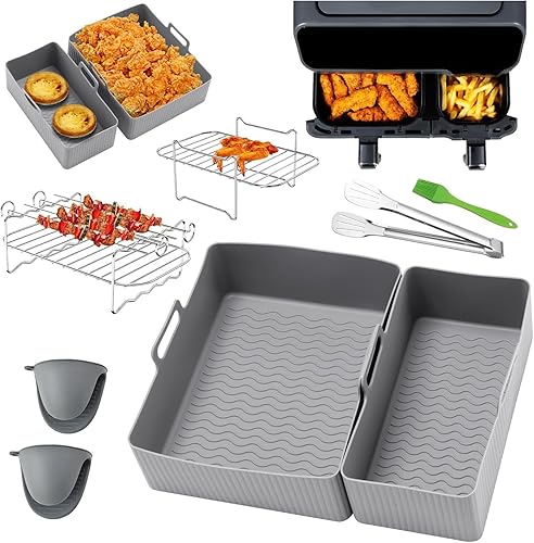 Lot de 2 accessoires de friteuse à air chaud, en silicone, moule gaufré belge pour Ninja AF300EU, AF400EU, AF451EU, AF500DE, SL400EU, réutilisables, accessoires de friteuse à air chaud Dual Zone pour