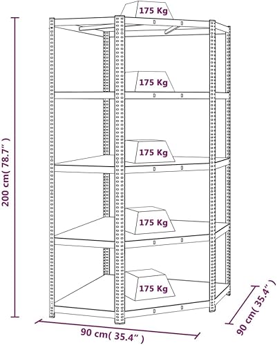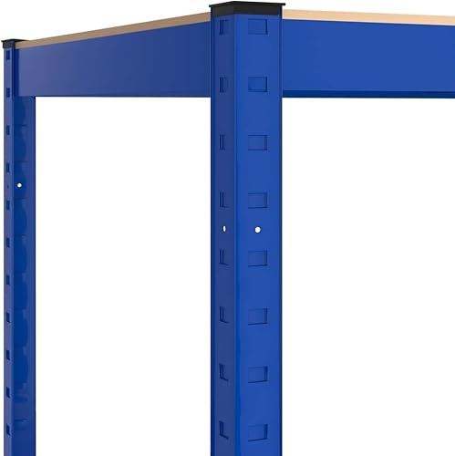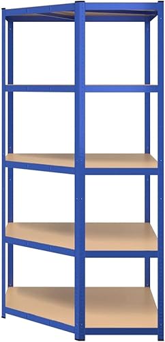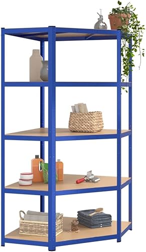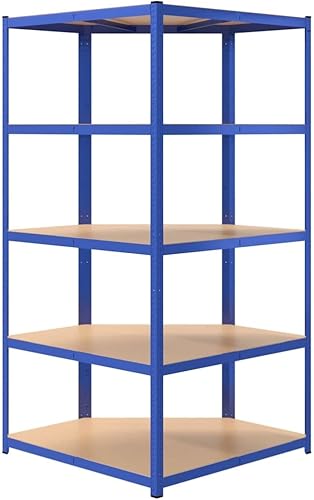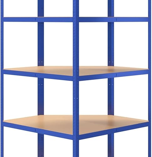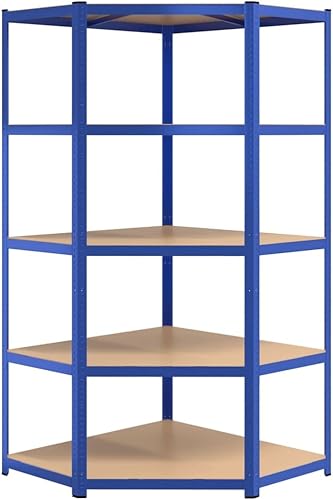 vidaXL Étagère d'angle à 5 Niveaux Étagère de Stockage Meuble de Rangement Stockage d'Atelier Garage Entrepôt Bleu Acier et Bois d'Ingénierie