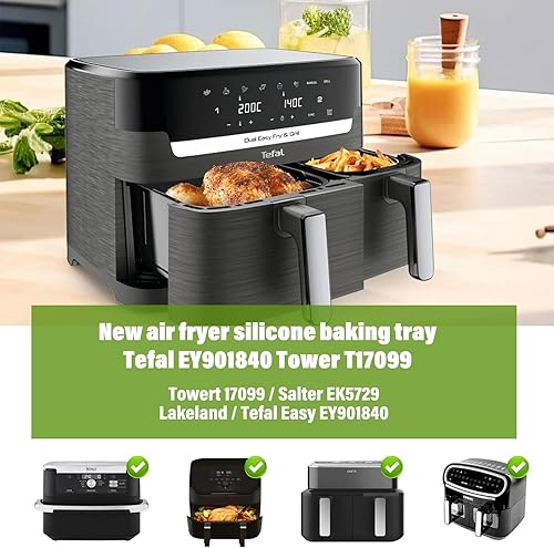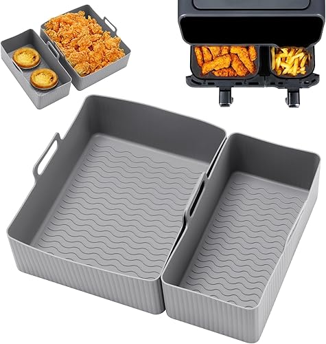 Camiraft Moule Silicone Air Fryer pour Moulinex EZ901820 5,2/3,1 L, 2 Pièces Plat Silicone Air Fryer pour Tefal EY901840,Air Fryer Accessoires pour Tower T17099 Salter Lakeland - Gris