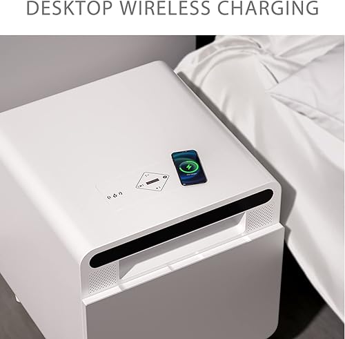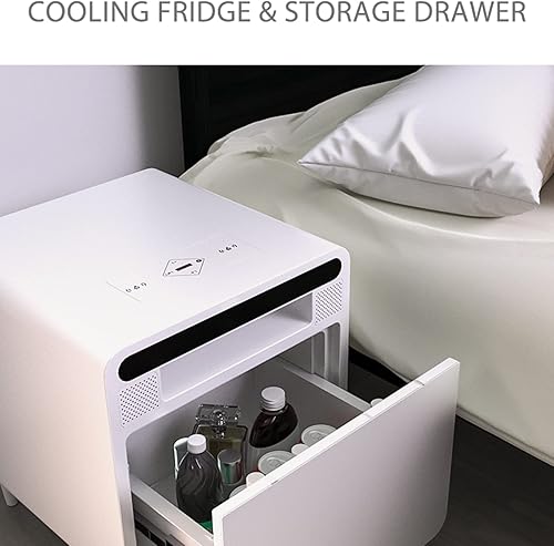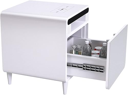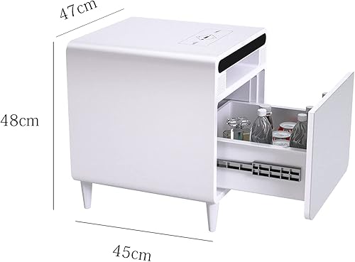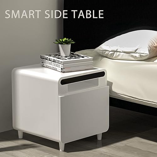 BEdaw Table de Chevet Intelligente, Smart Homeniture Table D'Appoint Métallique Gris Argenté Pour Salon Avec Chargeur Sans Fil Usb, Avec Réfrigérateur 2/3 Tiroirs
