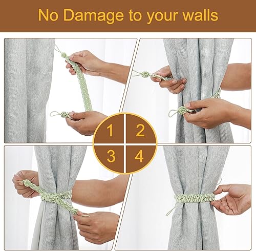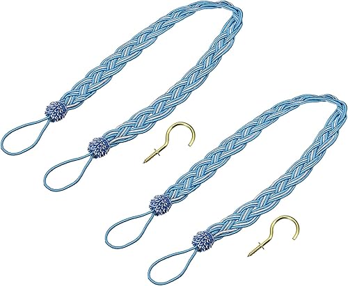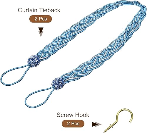 QUARKZMAN 2Pcs Embrasses de Rideaux 58cm/23 Attaches de Draperie Tressées avec 2 Crochet Métalliques Bleu/Argent