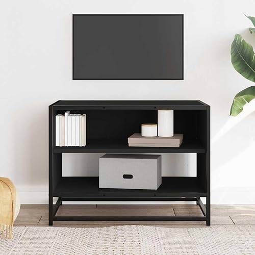 vidaXL Meuble TV Noir 61x40x46 cm Bois d'ingénierie et métal, Banc TV, Meuble HiFi, Centre de Divertissement, Buffet TV, Meuble multimédia, Console TV
