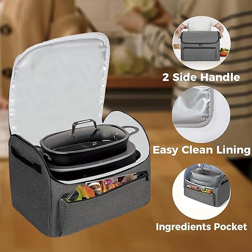 Ancsttu Housse De Transport Pour La Mijoteuse,Porte-Casserole Et Housse De Voyage Pour Mijoteuse - Tote Portable Imperméable Avec Poche Accessoire, Doublure Facile À Nettoyer, Organisateur Pour Voyage