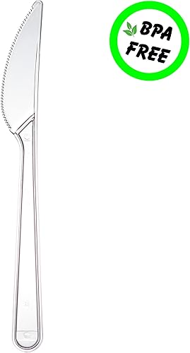 Couteaux en plastique - Couverts de fête réutilisables et robustes - Couteau en plastique réutilisable - Passe au lave-vaisselle (200)