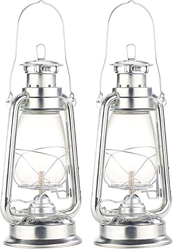 2 lampes-tempête rétro à pétrole 30 cm Amalia - aspect Zinc [Lunartec]