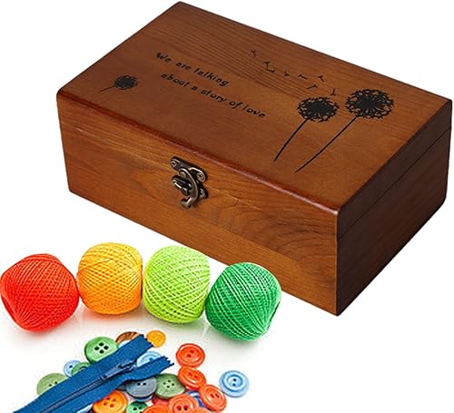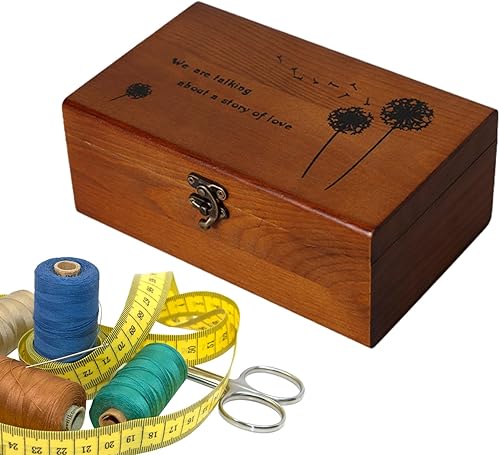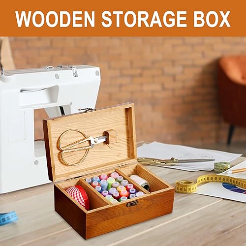 Shenrongtong Panier à Couture en Bois, boîte à Couture en Bois - Boîte à Fil en Bois | Boîte en Bois avec Couvercle à charnière, Fournitures de Couture pour l'artisanat, Rangement de Bricolage