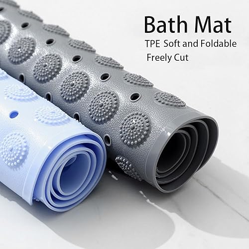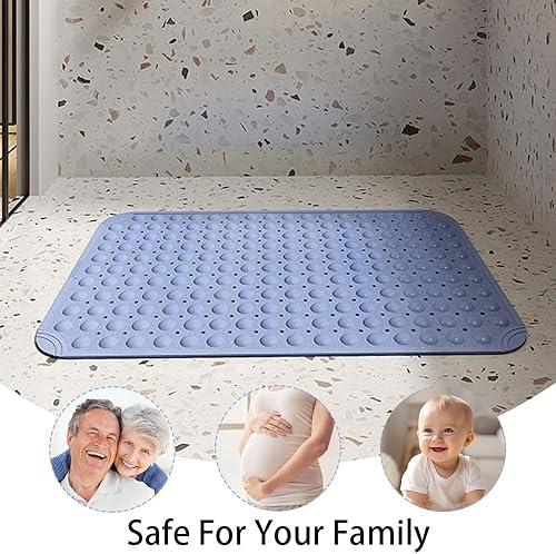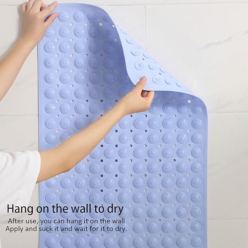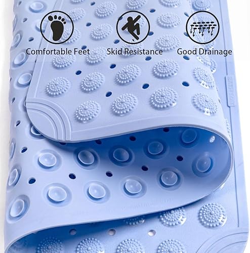 Surwin Tapis de Douche Antiderapant Bañera, Doux Tapis de Baignoire Antidérapant avec Trous de Drainage Ventouses Tapi de Bain de Massage en TPE pour Zones Humides (Bleu Clair,40x80cm)