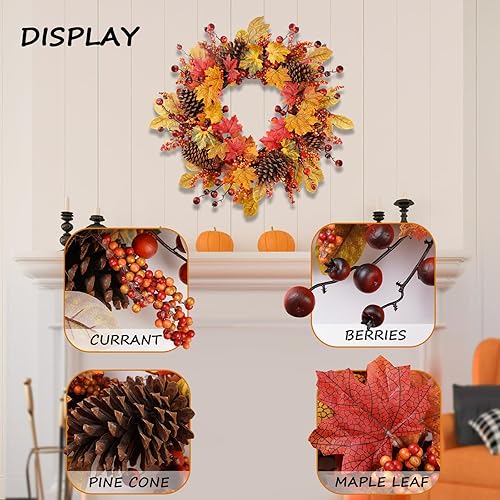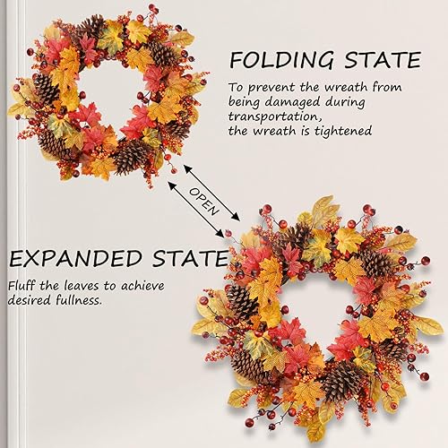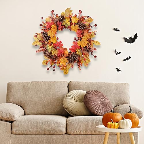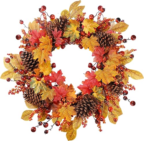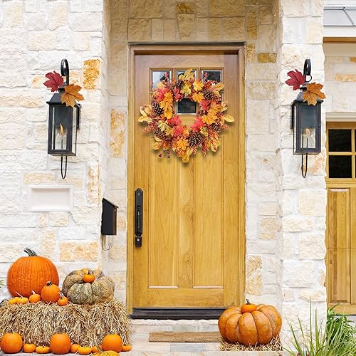 COLORSPEC Couronne d'automne de 61 cm - Grandes pommes de pin artificielles en érable pour porte d'entrée, mur, fenêtre, fête de mariage, intérieur et extérieur, couronne d'automne pour la maison,