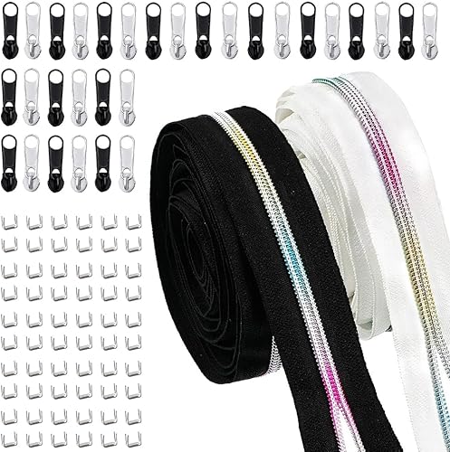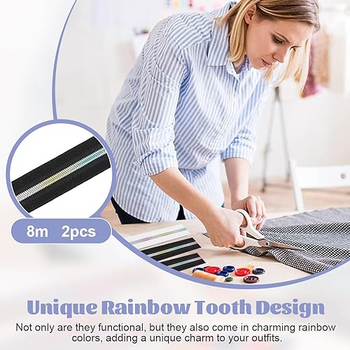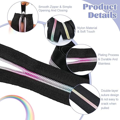 LPAMABA 2 Rouleau de Fermeture éclair Arc-en-ciel 5mm 10m en Nylon Ensemble de Fermeture à Glissière Sans Fin Fermeture Eclair au Metre avec 30 fermetures éclair et 60 embouts pour parure lit, sac
