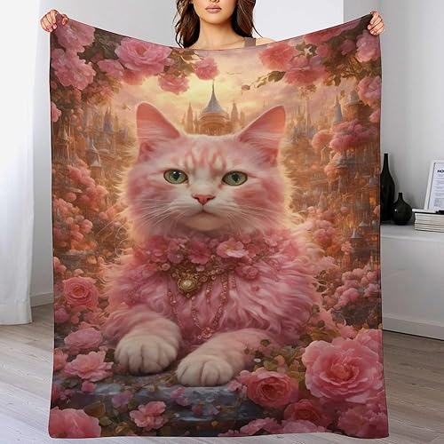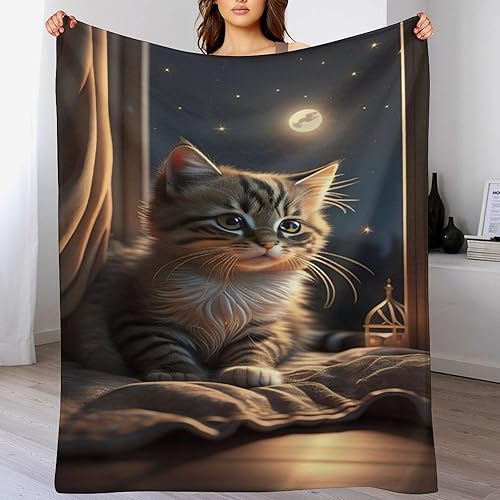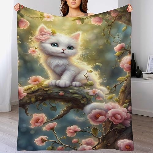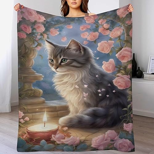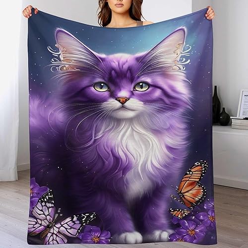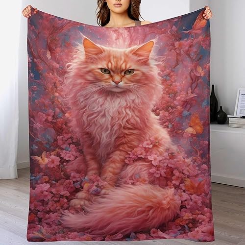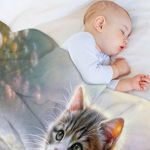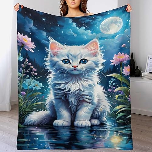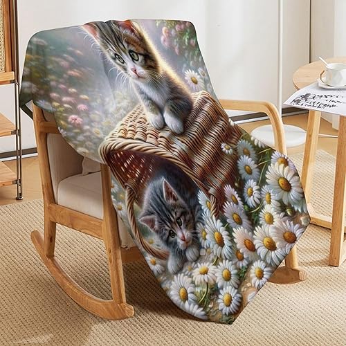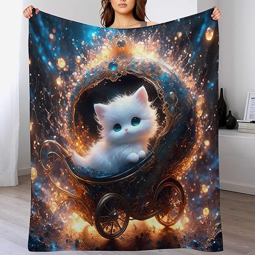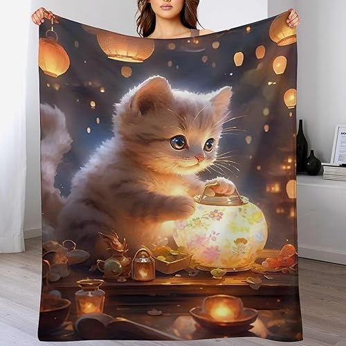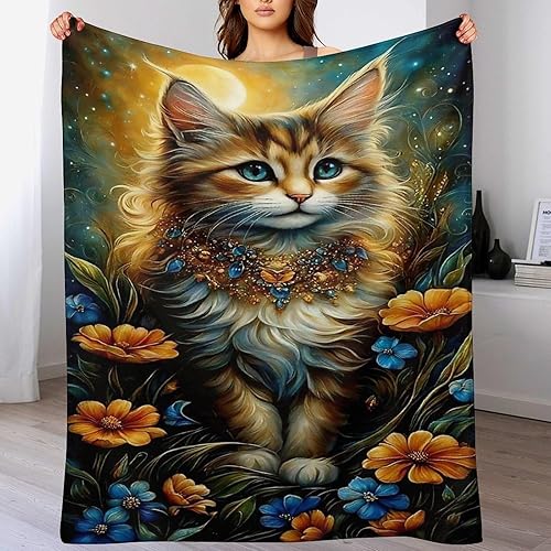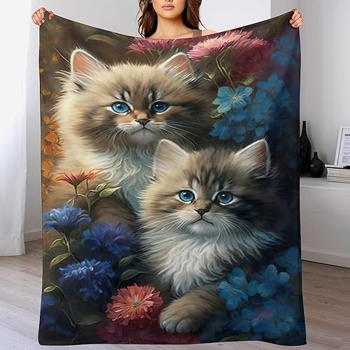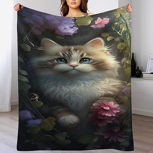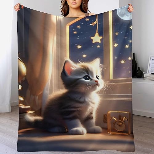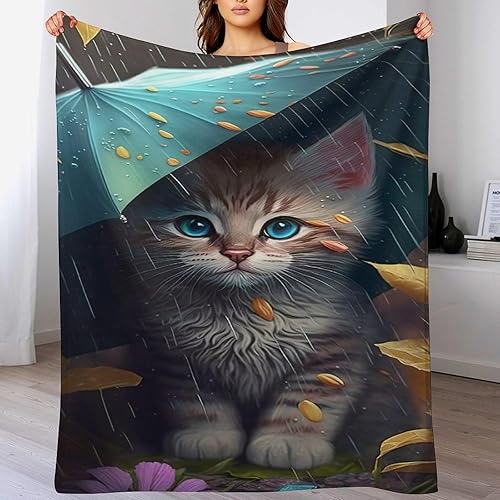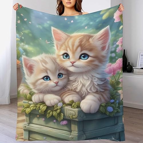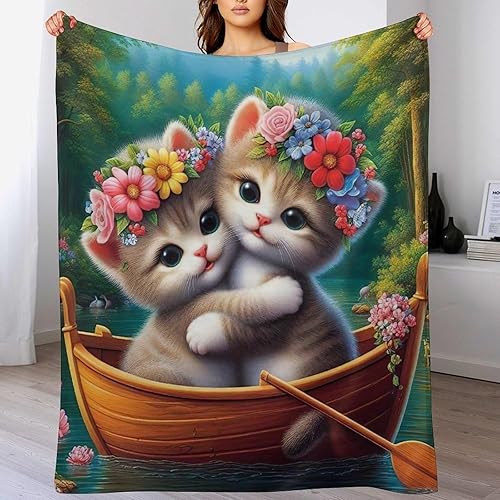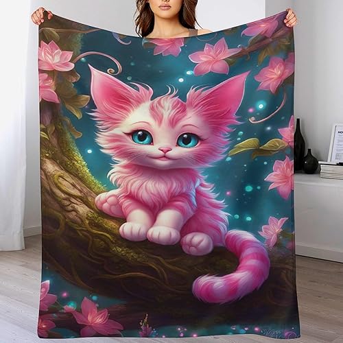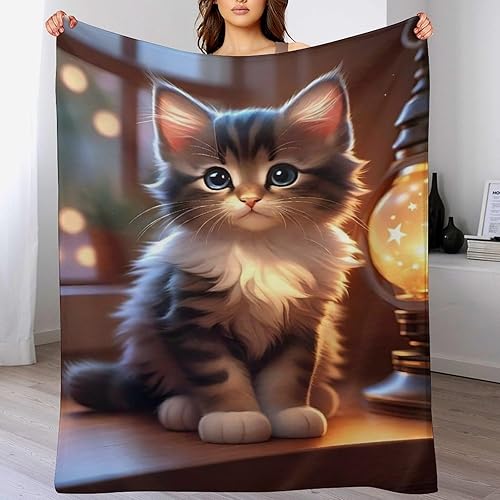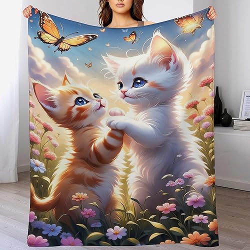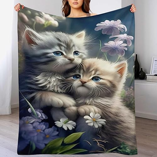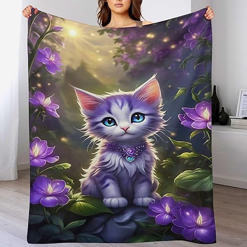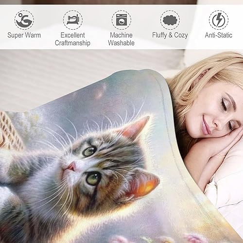 Couverture Polaires en Chat, Couvertures Moelleuses, Flannel Légère Super Douce avec Imprimé pour Canapé, 100×130cm