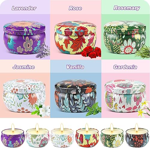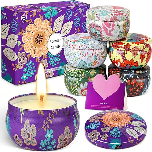 wilbest® 6pcs Bougie Parfumée Ensemble Cadeau, 100% en Cire De Soja Naturelle pour L'aromathérapie, Bath, Yoga, 18H Durée par Bougie, Pour Noël , Fête des Mères et La Saint-Valentin