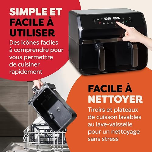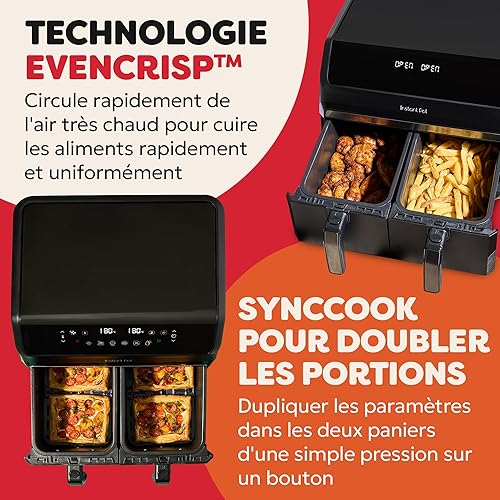 Instant Pot - Friteuse à air I Vortex Dual Truffle - Grande capacité 8 L, Format familial, Double panier de 4 L, 8 fonctions en 1 – Déshydratation, Gril, Cuisson au four, Rôtissage, Réchauffage