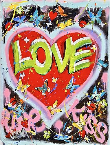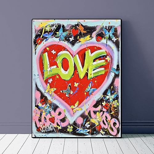 Graffiti Street Art Love Kiss Lettres Affiches Imprime Mur Coloré Papillon Toile Peinture Photo pour Salon Décor 70x90cm(28x35in) Sans Cadre