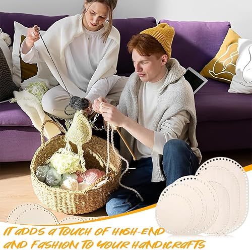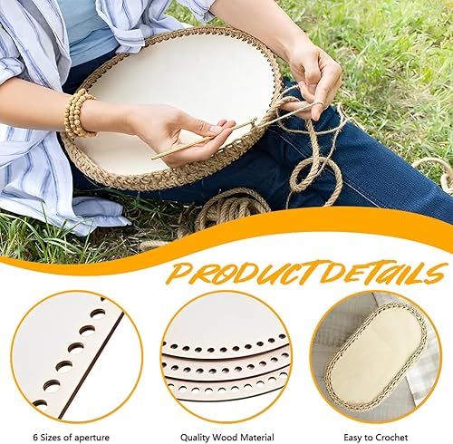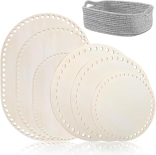 DWFEYOI 6 pièces, Panier Au Crochet Rond, base en bois pour crochet, Fond De Panier en Bois Rond,base de sac ovale et ronde, ensemble de tissage de paniers pour bricolage, 10/15/20/25/30 cm