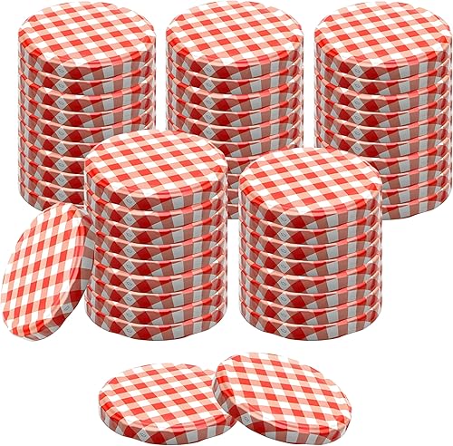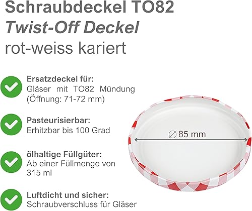Devitre Lot de 50 couvercles Twist-Off TO82 de 82 mm - Rouge/blanc - Diamètre : 85 mm - Pour bocaux avec embouchure de 71-72 mm
