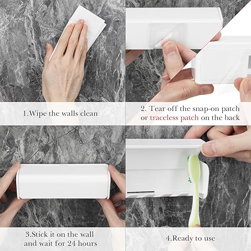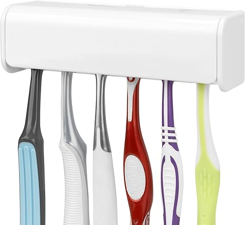 Linkidea Porte-Brosse à Dents Mural avec Couvercle pour Douche, Organisateur Peu encombrant pour Camping-Car, Support de Brosse à Dents Auto-adhésif en Plastique à 6 emplacements (Type A)