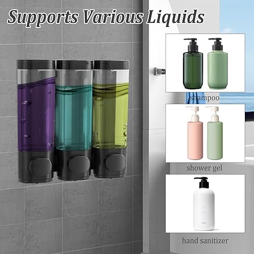 Distributeur de Savon Mural, 3 * 300ml Distributeur Shampoing et Gel Douche Distributeur Gel Douche Mural pour Salle de Bain Hôtel Restaurant