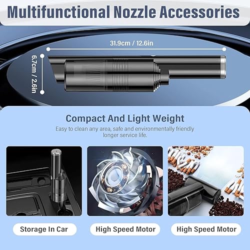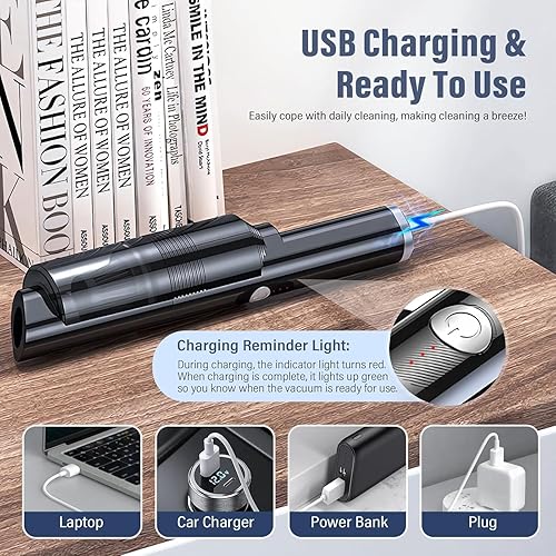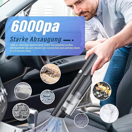 Anluomafuy Aspirateur à Main, 6000Pa Aspirateur Voiture, Mini Aspirateur Voiture sans Fil, avec Lampe LED/Filtre Lavable HEPA pour Canapé Maison Voiture Bureau Table