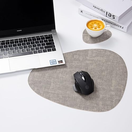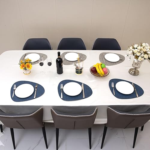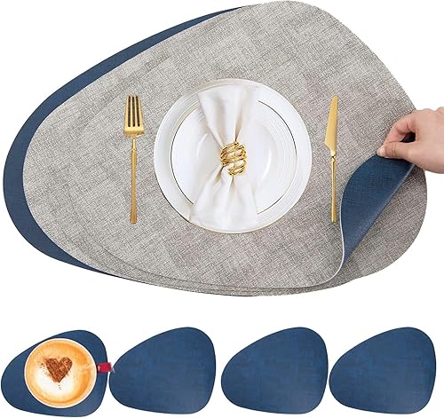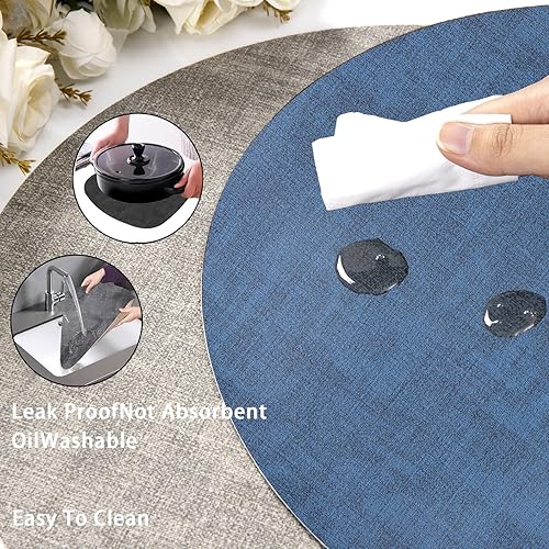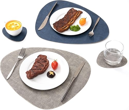 Sets de Table Lavables et sous-Verres,Cuir Lavable,Set Couverts de Table Double Face Résistant à la Chaleur Set de 6 Sets de Table Antidérapants en Simili-Cuir(Gris Clair et Bleu)
