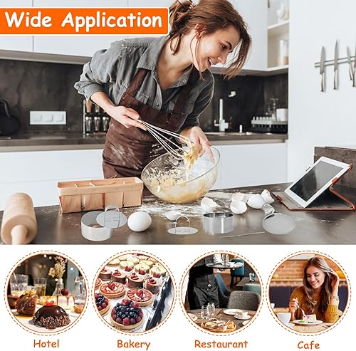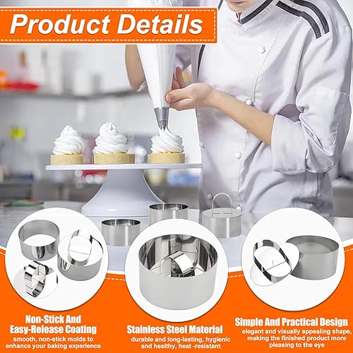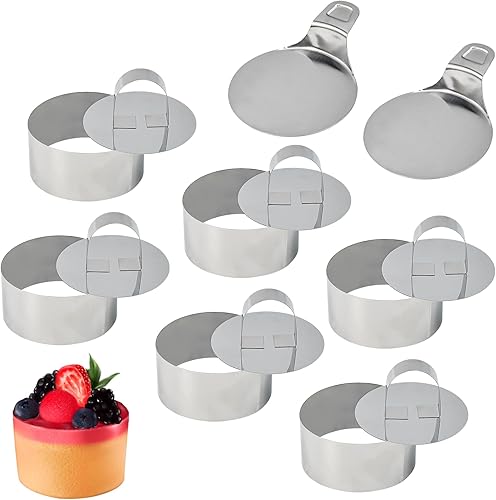 WEFHEF 6 PCS Cercle à Pâtisserie Cercle 8cm Gateau Inox 6 Couvercles 2 Spatules Démoulage Inox Cercle Rond Patisserie Moules à Gâteaux Rond Inox Pour Gâteaux Mousses