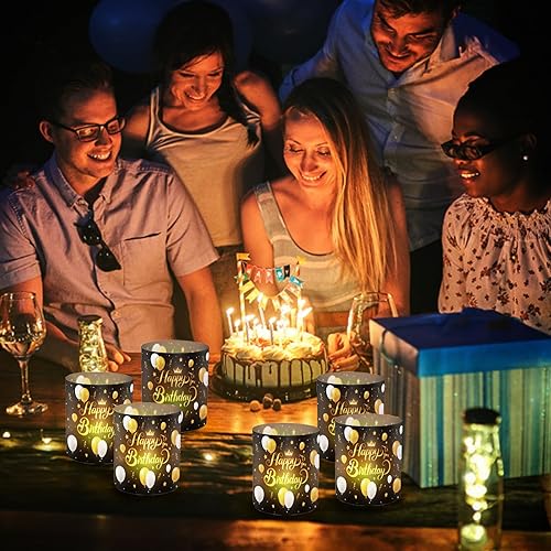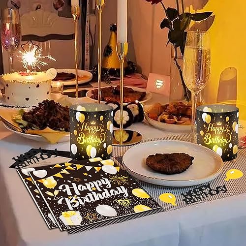 YOUYIKE Lot de 12 lanternes de décoration de table d'anniversaire, 20 serviettes Happy Birthday + 100 paillettes à confettis, décoration d'anniversaire pour femme, homme, fille, garçon, enfant