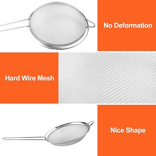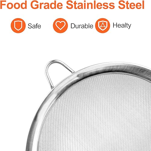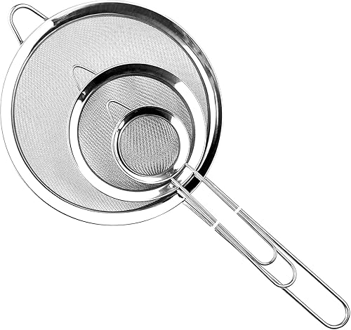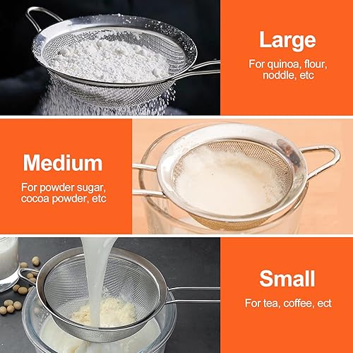 Relota 3 Pièces Passoire Inox 20.5/29.5/38.5 cm, Tamis Cuisine avec Poignée, Métal Tamis Maille Fine, Filtre pour Égoutter Poudre, Pâtisserie, Nouille, Riz, Pates, Légumes, Quinoa, Blanc d'Oeuf