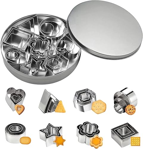 Lot de 24 mini emporte-pièces en acier inoxydable - Outils de bricolage pour pâtisserie, fondants, biscuits, décorations de gâteaux
