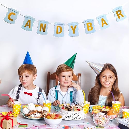 ereqeip Ensemble de décoration de Bar à Bonbons - Ensemble de Fournitures de fête à thème Candy | Ensemble de décoration de Bar à Bonbons pour Buffet, Grill, Mariage, Anniversaire, Anniversaire, fête