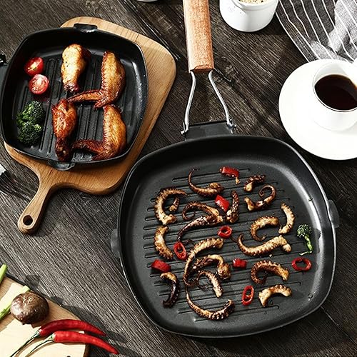 Duyeuau Poêles à griller pratiques avec surfaces antiadhésives, texture en fer raffinée pour la cuisson intérieure de steak et bacons
