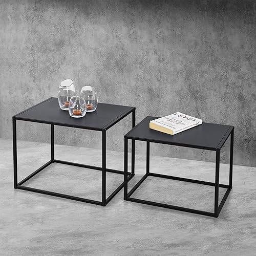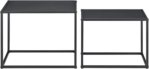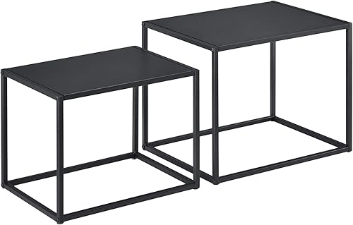 Lot de 2 Tables Basses Rectangulaires en Métal Anti-Éraillures 35 x 45 x 35 cm / 30 x 40 x 30 cm Noires Mat