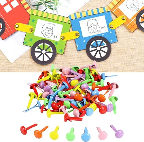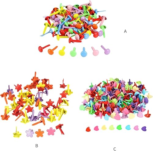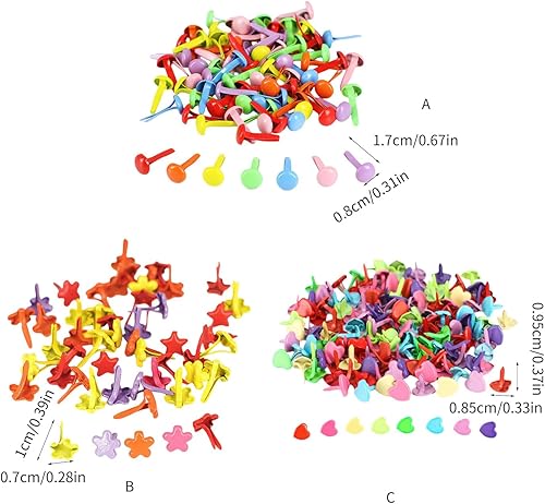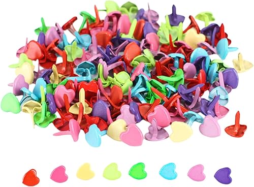 pumpumlia Lot de 100 attaches parisiennes rondes en métal multicolores en forme de cœur pour loisirs créatifs et scrapbooking