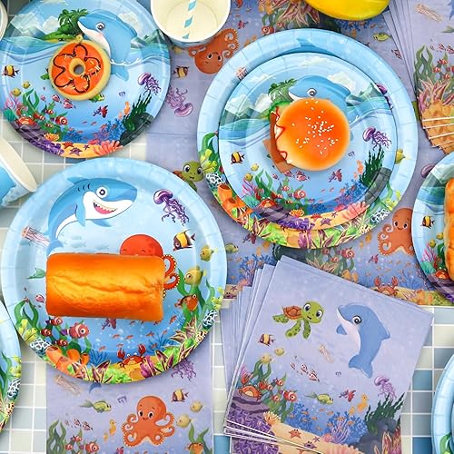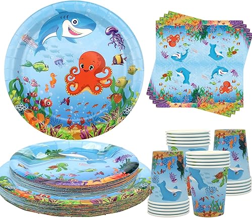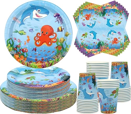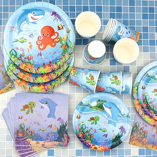 ENCETARDE - Fournitures de fête sous la mer - Vaisselle de fête sur la mer - 80 pièces - Bleu - Décorations pour occasions spéciales