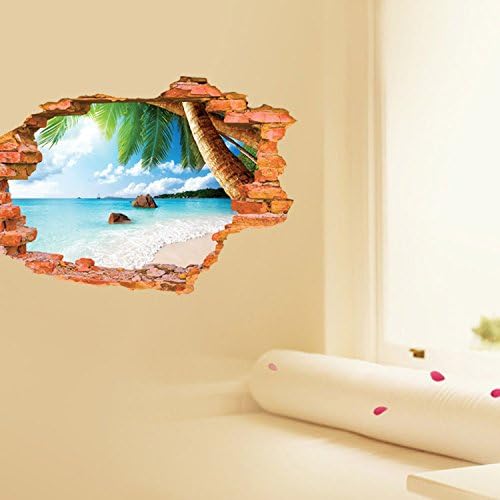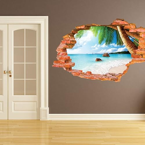 AUVS® 3D Amovibles Briser Le Mur Autocollant Vinyle Stickers Muraux/Mur Peintures, Art Autocollants Décorateur 8001F Coconut Beach (60x90cm)