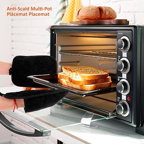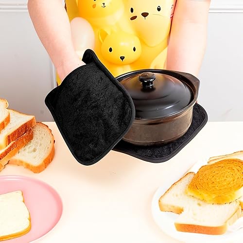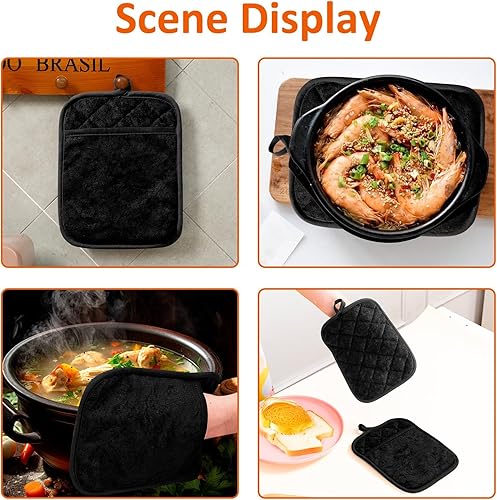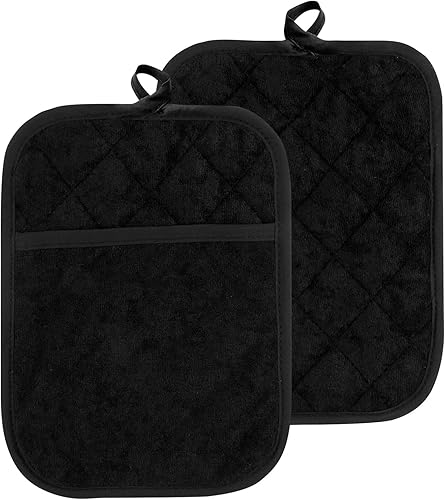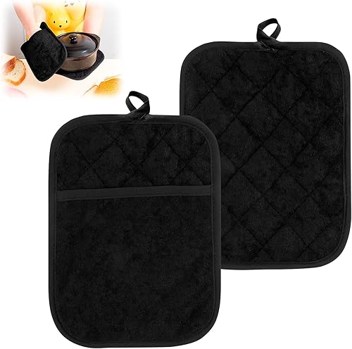 Lot de 2 Maniques en Coton Noir avec Poches, Gants de Cuisine Résistants à la Chaleur, Gants de Cuisine Antidérapants pour la Cuisine, la Pâtisserie et Les Grillades, Taille 17,8 x 23,8 cm
