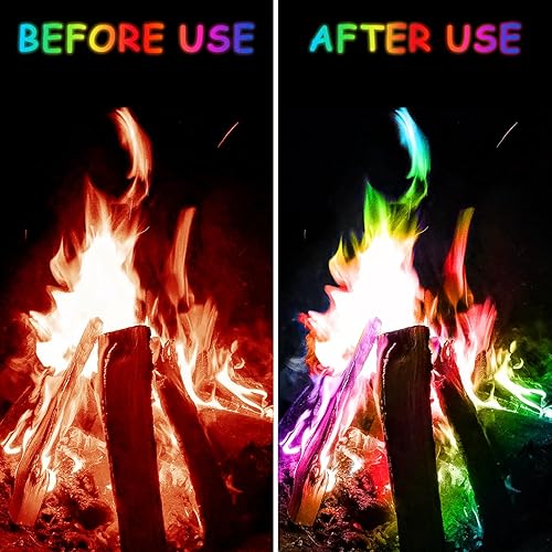 TOPJOWGA Feu Mystique, 10 x 10G Poudre pour Colorer Les Flammes, Feu Multicolore et Mystique, Cheminée Magique Colorée en Poudre de Poussière, Magique Arc-en-Ciel Flamme pour Halloween et Noël