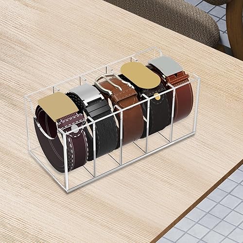 LOVIVER Organisateur de Ceinture en Acrylique, boîte de Rangement, présentoir de Ceinture, Multi-Compartiments pour Montres, Bijoux, nœud Papillon, Bracelets, 5 Compartiments