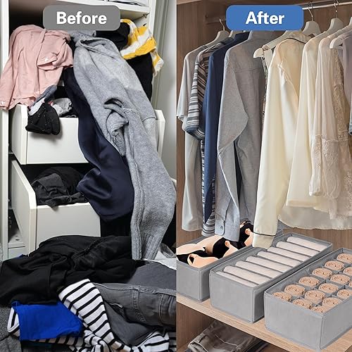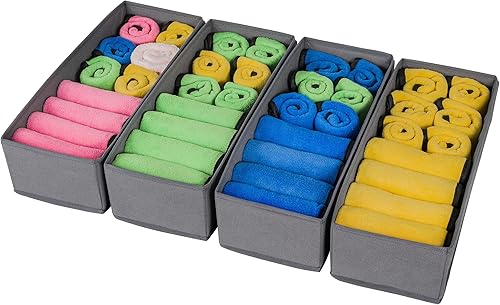 Lot de 4 HEMNES Organisateur Tiroir, Boite Rangement Vetement Pliable, Separateur Tiroirs en Tissu, Rangement sous Vetement, Panier Rangement Armoire pour Chaussettes, Cravates, Ceintures