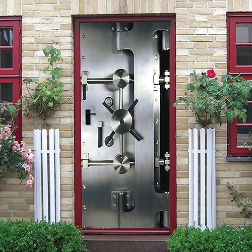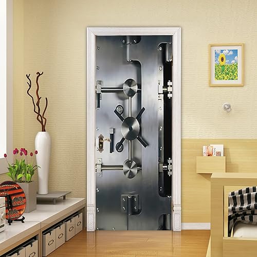 MYIESAXL Sticker Porte Effet 3D Coffre-Fort en Argent Poster de Porte, PVC Imperméable Papier Peint pour Chambre Salle de Bain Cuisine Décoration Porte Murale, Autocollant Porte(77 x 200cm)