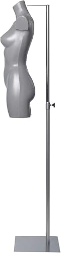 Buste long basique pour femme gris avec pied, buste réglable en hauteur, mannequin de vitrine