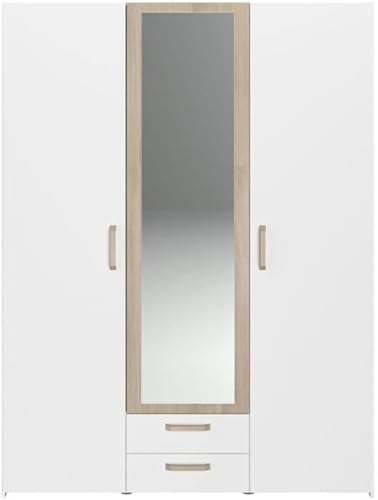 Parisot Chambre Complete Adulte - Dream - Lit 140x190/200 cm + 2 chevets + Armoire - Décor Blanc et chene