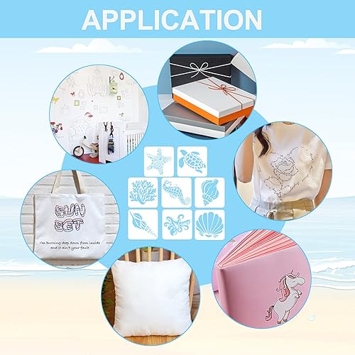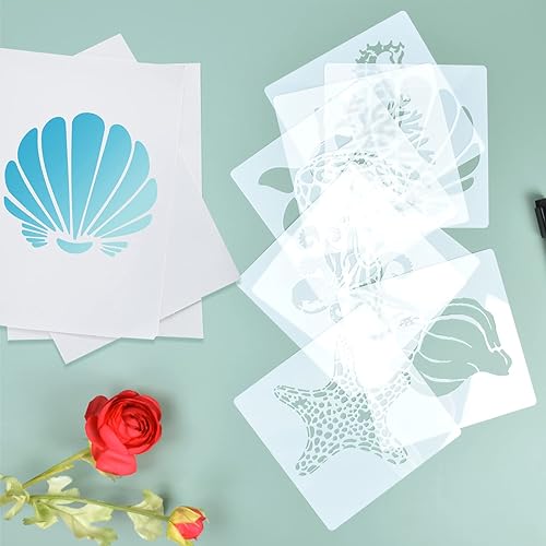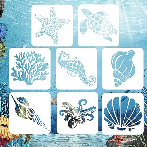 AvoDovA 8 pièces Pochoirs de peinture de Créatures Marines, Réutilisable Journal Peinture Pochoir pour Enfants, Dessin Pochoirs pour Bricolage Artisanat Scrapbooking Peinture sur Bois, 13 * 13CM