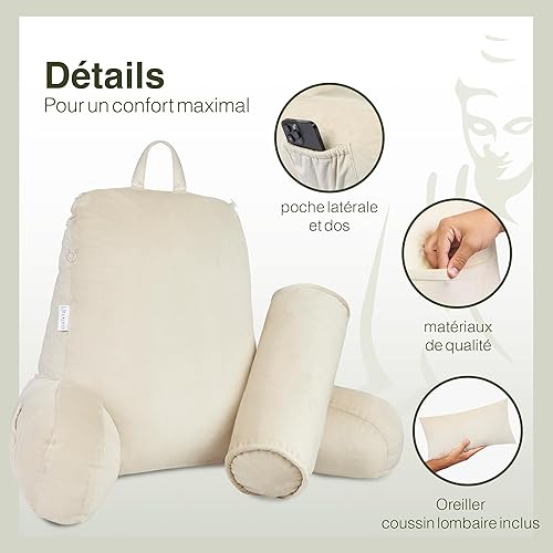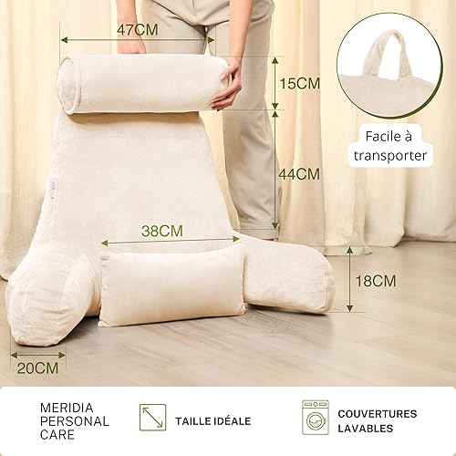 MERIDIA Premium Coussin de Lecture (Set de 3) - Coussins de Lecture pour Lit Oreiller Dossier Canapé Taie Lavable (Beige)