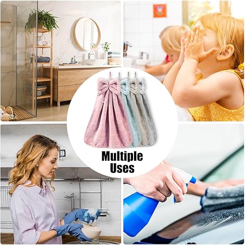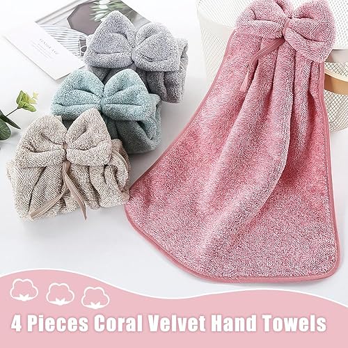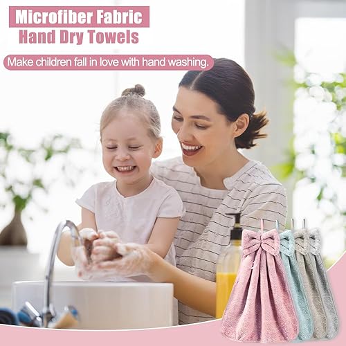 Lot de 4 serviettes de séchage à la main en microfibre avec boucle suspendue, absorbantes et douces, pour cuisine, salle de bain, enfants, adultes