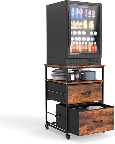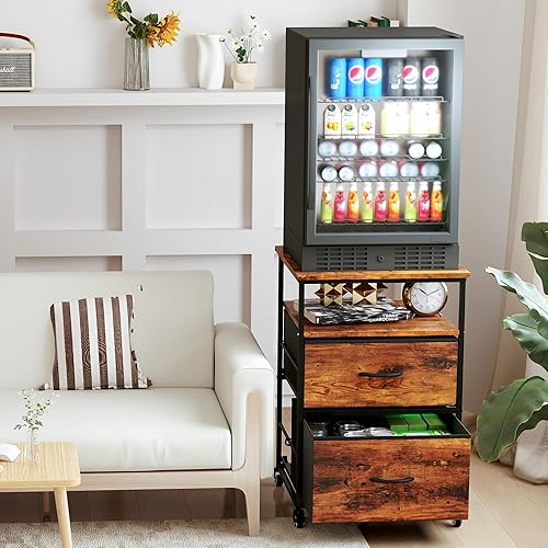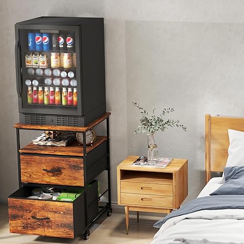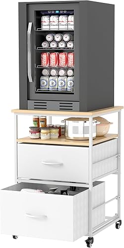 Suuiwau Mini support de réfrigérateur avec rangement mobile pour réfrigérateur - Mini armoire de réfrigérateur compacte à roulettes pour cuisine, chambre à coucher, bureau, dortoir, blanc