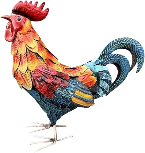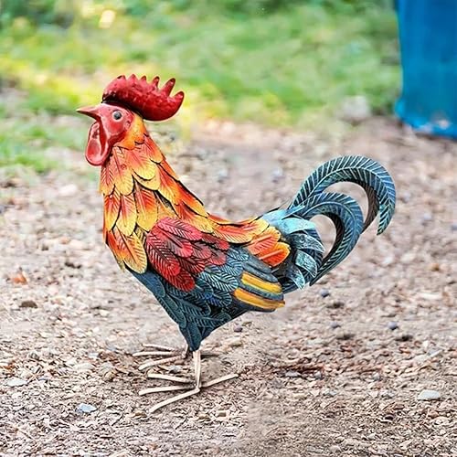 Sculpture de coq en métal - Décoration de jardin - Ornement de coq debout - Coq - Statue d'extérieur de poulet Animaux pour décorations extérieure pour Jour de l'indépendance